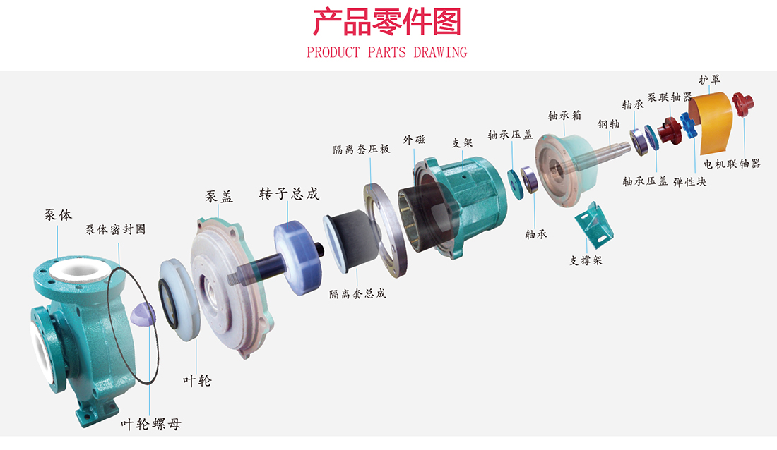 設計特點:泵室完全封閉,通過磁力偶合器間接驅(qū)動葉輪工作,取消了軸封,達到了無泄漏、無污染的工況要求。用途:可以安全輸送強酸、強堿、劇毒、有機溶劑、及純凈、貴重的化學介質(zhì),適用于各種化工流程,充分滿足嚴格的安全性、可靠性和生態(tài)環(huán)保要求。流量范圍:12.5T/h-100T/h,揚程范圍:20m-60m,功率范圍:2.2kw-18.5kw,運行溫度:-20℃—150℃??筛鶕?jù)實際工況要求變更配置。