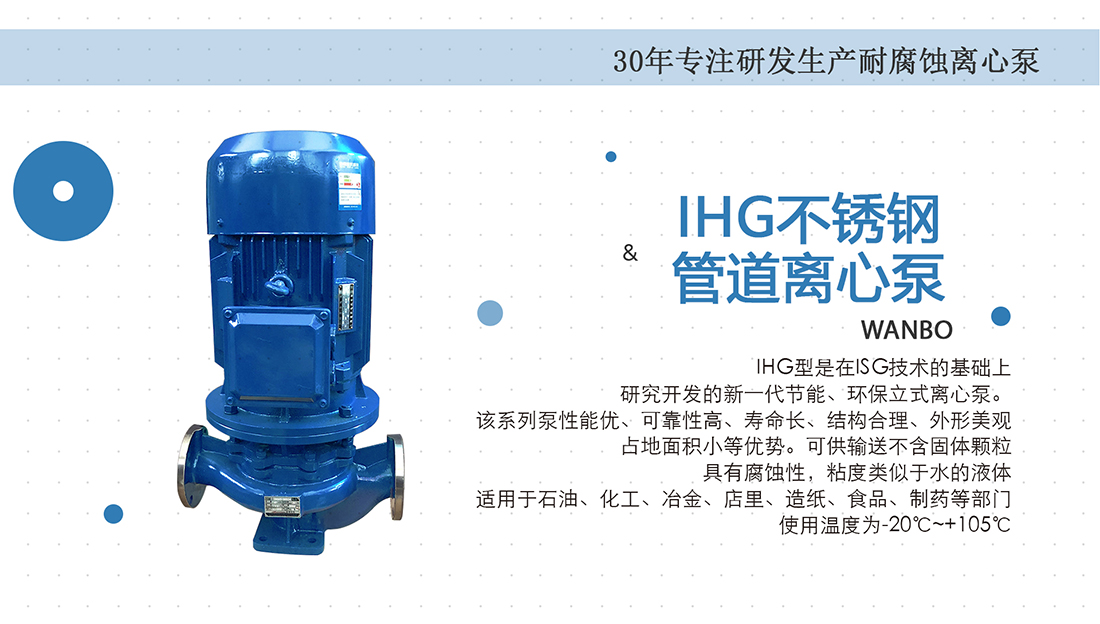 設計特點:泵為立式結構,出入口直徑相同,且位于同一中心線上。它可以像閥門一樣安裝在管道中。形狀緊湊美觀,占地面小,建筑投資低,如電機加上防護罩可置于戶外使用。軸封是機械密封,材料根據(jù)需求選定,使用壽命一般超過一年。易于安裝和維護,無需拆卸管道系統(tǒng),只需拆下泵體支架螺母即可提取所有轉子部件。根據(jù)流量和揚程的要求,采用串、并聯(lián)運行方式??筛鶕?jù)管道布置的要求使用泵的垂直或水平安裝。用途:適用于輕紡、石油、化工、制藥、衛(wèi)生、食品、煉油等工業(yè)輸送化學腐蝕性液體。流量范圍:3T/h-720T/h,揚程范圍:20m-150m,功率范圍:1.5kw-110kw,運行溫度:-20℃—105℃??筛鶕?jù)實際工況要求變更配置。